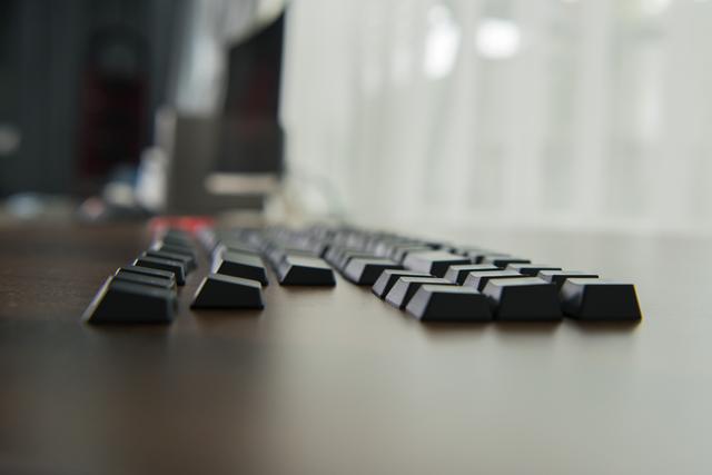 值得一提的是这款键盘采用了半高键帽,从这个角度能够看出,这套键帽高度较尺度高度键帽要小,不外每行键帽仍然具有人体工学高度。